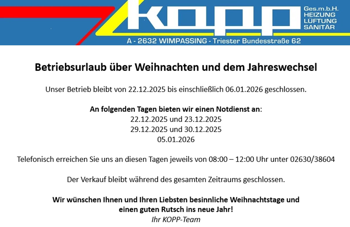Seit dem Jahr 1964 sind wir für unsere Kunden da. Das Unternehmen Kopp ist über die Jahre stetig gewachsen. Unser größtes Kapital sind unsere Mitarbeiter, deren Weiterbildung uns entsprechend wichtig ist. Wir geben unsere Erfahrung und unser Know-how in der Lehrlingsausbildung an die Jugend weiter. Hohen Wert legen wir bei Kopp Haustechnik für die Bezirke Neunkirchen und Wiener Neustadt auf die Qualität unserer Produkte. Wir wählen zuverlässige Hersteller, die innovative Technologie anbieten.